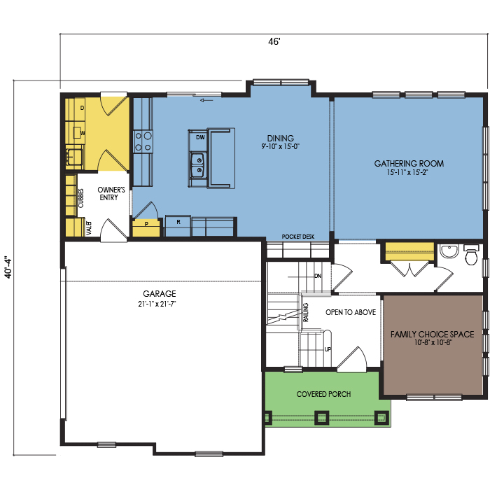 A part of our Family Series, the Glacier floor plan features 4 bedrooms and 2.5 bathrooms with a footprint of 46x40 feet and 2195 total square feet of living space. Floor Plan #FM239