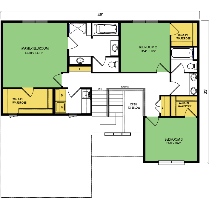A part of our Family Series, the Yosemite floor plan features 3 bedrooms and 2.5 bathrooms, a 2 car garage, 2 stories, a footprint of 46x42 feet, and 2147 total square feet of living space. Floor Plan #FM233